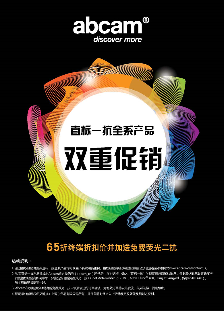abcam直標(biāo)一抗6.5折,訂購(gòu)2支送2抗