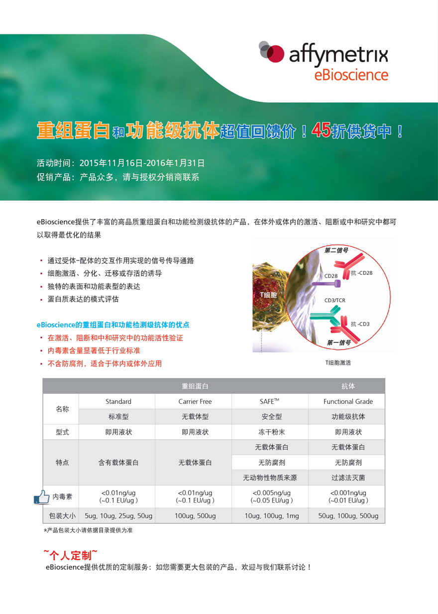 ebioscience 重組蛋白和功能級(jí)別抗體低至4.5折促銷